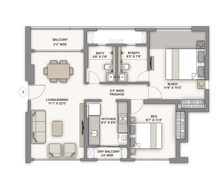 Click For More DetailsConfiguration: 2 BHK, 3 BHK